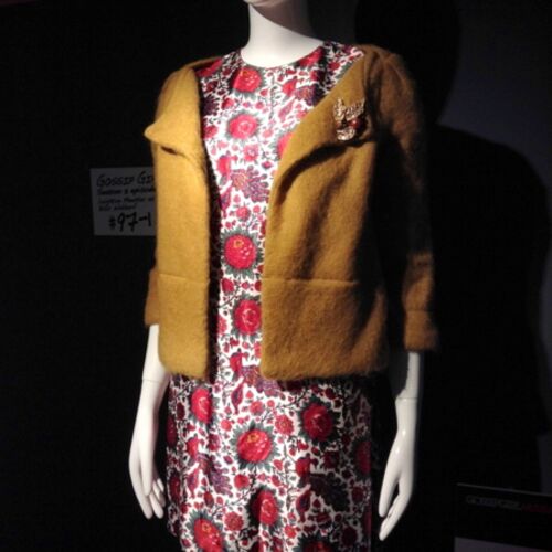 昨日行ってきました内覧会の続きです。 こちらはブレアの第10話「サンキュー、ボーイズ」の衣装です。 ドレスはバレンシアガ。 ジャケットの襟にブローチが付いています。 こちらもブレアの衣装で、第2話「美女と饗宴」のものです。ルイ王子の妹ベアトリ…